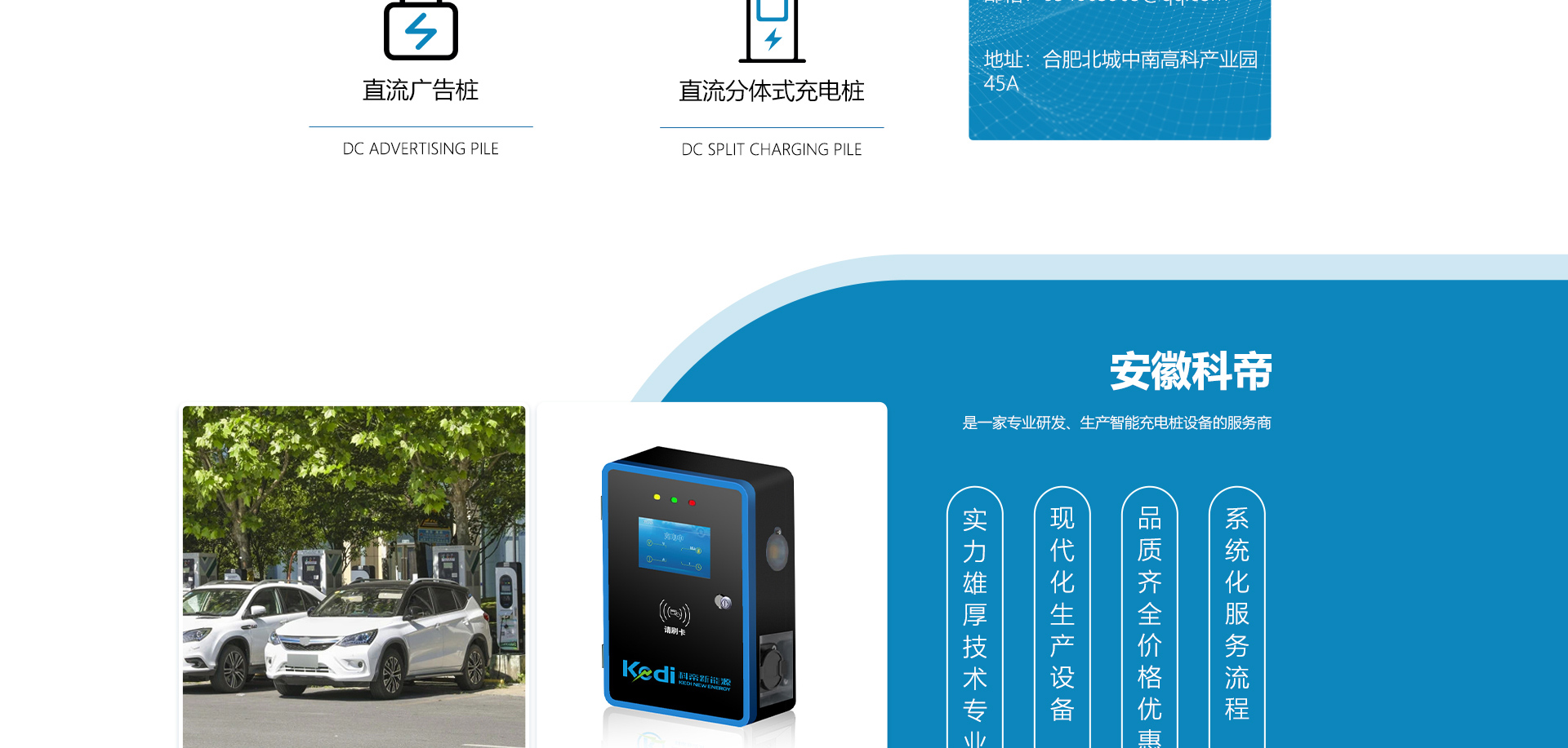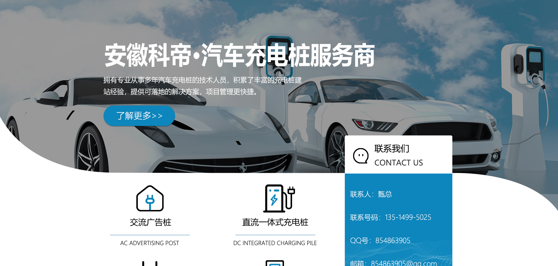 安徽科帝新能源科技有限公司坐落于安徽省會(huì)-合肥,是一家研發(fā)、生產(chǎn)智能充電樁設(shè)備,汽車充電站后臺(tái)監(jiān)控管理系統(tǒng)和生產(chǎn)高壓開(kāi)關(guān)設(shè)備的企業(yè).由專門的研發(fā)團(tuán)隊(duì)、管理團(tuán)隊(duì)按照現(xiàn)代化企業(yè)制度規(guī)范設(shè)立的有限責(zé)任公司。致力于為能源智能、安全的應(yīng)用和節(jié)能減排提供整體的技術(shù)與產(chǎn)品解決方案。科帝集研發(fā)、設(shè)計(jì)、生產(chǎn)、銷售以及服務(wù)于一體,在電動(dòng)汽車充電方案,充電設(shè)施建設(shè)和城市配電方面擁有廣泛的技術(shù)研究及經(jīng)驗(yàn)積累,為客戶提供安全、智能的充電設(shè)備及充電運(yùn)營(yíng)站建設(shè)一體化解決方案。并堅(jiān)持以人為本、質(zhì)量為先、顧客至上、不斷創(chuàng)新”的企業(yè)理念,為能源行業(yè)的發(fā)展、節(jié)能減排做出重大的貢獻(xiàn)。公司擁有豐富的產(chǎn)品種類,目前科帝已研發(fā)生產(chǎn)了三十多種產(chǎn)品,充電設(shè)備有直流一體式充電樁、直流分體式充電樁、直流廣告樁、交流廣告樁、廣告一體樁、壁掛交直流樁;等多種充電設(shè)備;每一款產(chǎn)品都是精心打造,力求為客戶提供優(yōu)越的用戶體驗(yàn)。展望未來(lái)科帝將通過(guò)持續(xù)的自...